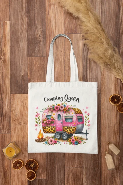 MOOGA | Camping Queen #1 praktická bavlněná nákupní taška s potiskem