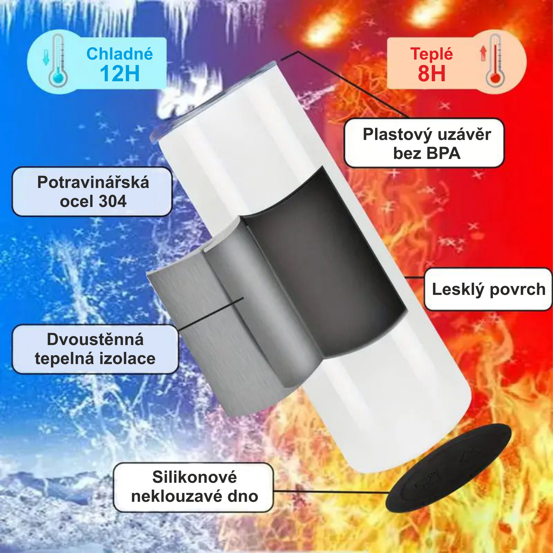 MOOGA | Chuck & Geck nerezový termohrnek 600ml s kovovým brčkem