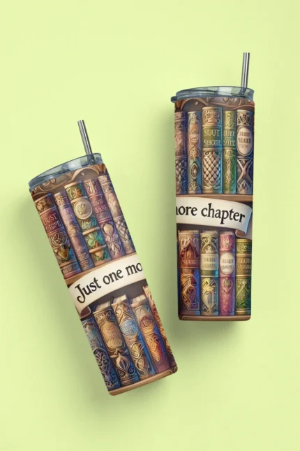MOOGA | Book Lover Library nerezový termohrnek 600ml s kovovým brčkem